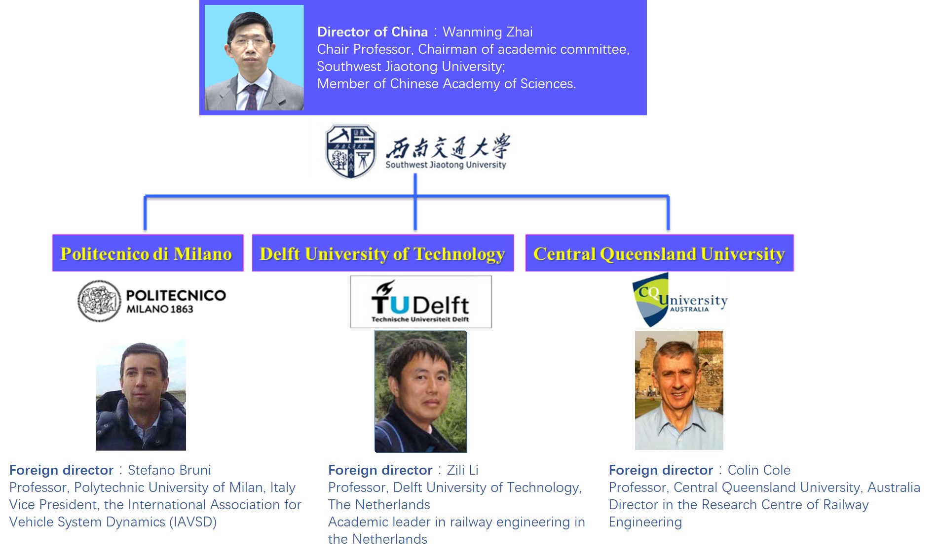 Academic leader of China:Wanming Zhai, Chair Professor, Chairman of academic committee, Southwest Jiaotong University; Member of Chinese Academy of Sciences.