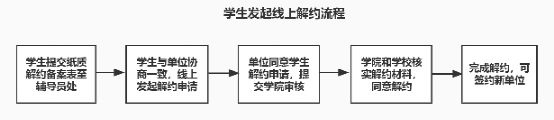 (二)学生备案相关材料请在每周四之前交到学生工作组,其余时间不收取此项工作材料。如材料齐全,学生工作组会在周五之前办理好违约事宜且通过就业网审批。