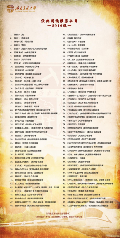 根据《西南交大经典阅读推荐书目(2019版)》,请17级、18级研究生学生干部每人撰写一篇1500字——3500字读书心得,欢迎其他同学积极投稿!