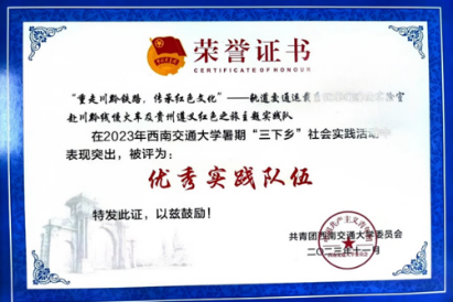 团支部始终把政治建设摆在“火车头”位置,依托领航先锋、主题党日活动等平台,以党员带团员的形式学习党的二十大精神。支部组织团员前往攀枝花、重庆、遵义和西安等地参观红色教育基地,依托“暑期三下乡”、校级示范团支部活动等平台带领支部成员乘坐5629、5633和6063次慢火车感悟国家脱贫攻坚和乡村振兴成果。支部带领团员们深入学习“抗震救灾精神”,缅怀生命、铭记历史,制作的《震撼与守护——抗震救灾精神》作品参加第二届研究生“信仰”微党课评选活动并获得校级二等奖。