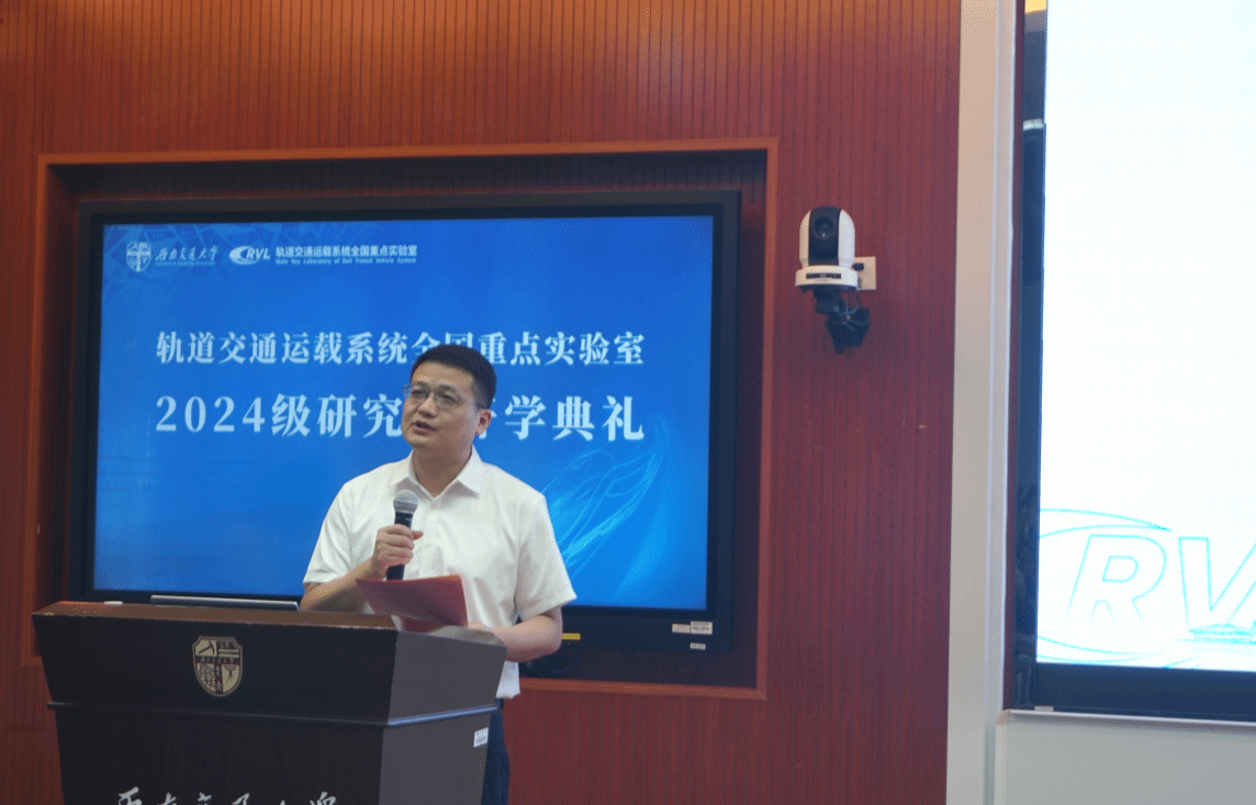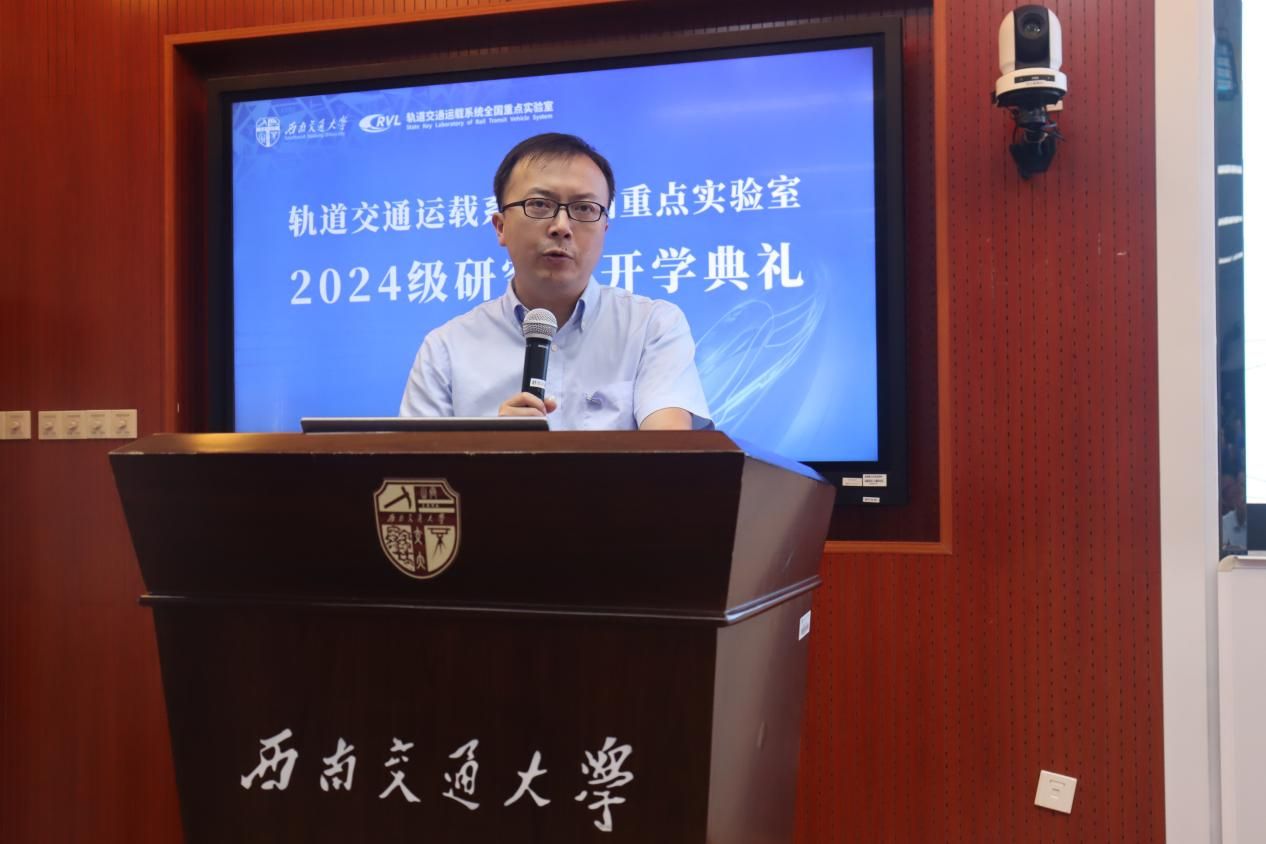 接着,a片漫画 主任王开云介绍了a片漫画 “应铁路而生、因铁路而兴、凭铁路而强”的数十年风雨历程,以时间为脉络梳理了a片漫画 在学界、业界的影响和贡献。他希望2024级研究生能够秉承科学家精神,矢志不渝接续奋斗,继续为轨道交通行业的发展贡献力量。