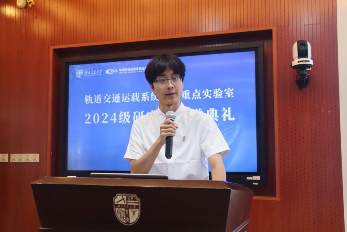 a片漫画 2024级新生代表张帆同学发言,他呼吁同学们一起努力,发扬“竢实扬华,自强不息”的交大精神,成为德才兼备、面向未来的创新人才,为轨道交通事业贡献自己的智慧和力量。