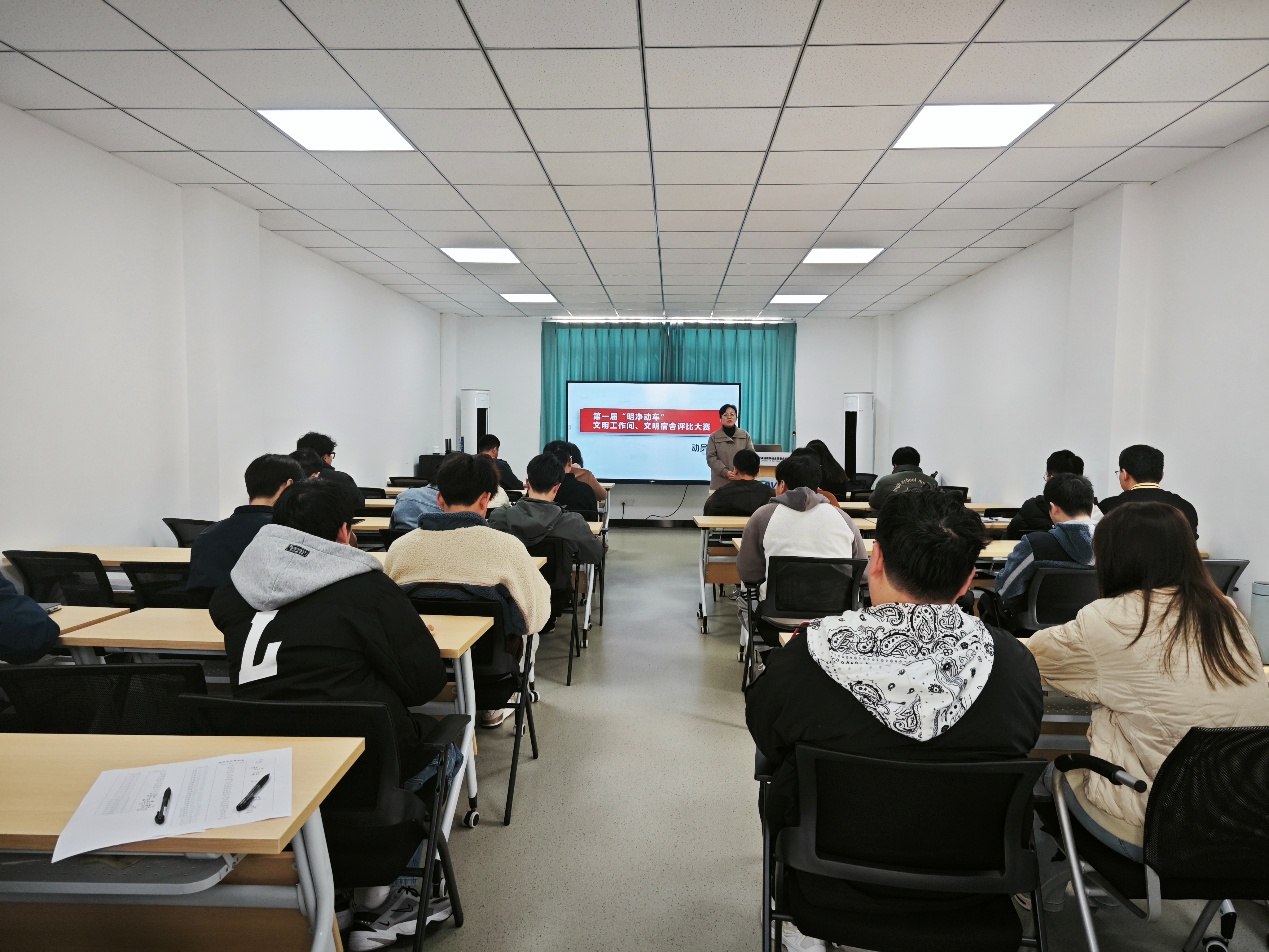 会议伊始,申宇老师介绍本次评比大赛的整体架构,阐释活动意义,着重指出文明工作间与宿舍建设对学生思想道德培养、学术氛围营造、身心健康发展的关键作用。随后,申宇老师对大赛活动安排、评比标准、奖项设置等核心内容进行细致解读,为参会人员勾勒出清晰的大赛轮廓,使其对赛事细节有了全面且深入的认识。
