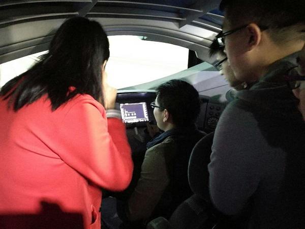 紧接着同学们迎来了本次参观活动的重头戏——高速动车组模拟驾驶。胡老师带领同学们来到高速动车组驾驶仿真平台,让每位同学都亲手模拟驾驶高速列车。同学们惊讶于仿真平台给人带来的真实感,不禁啧啧称赞。班长曾厚铭在模拟驾驶后激动地说道:“坐在驾驶座位上,自己握着速度手柄,这种感觉真的很不一般,特别是我感觉好像真的是坐在运动的列车上,每一个细节都很真实!”