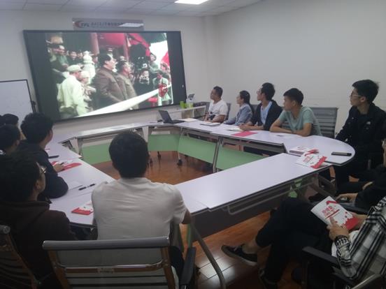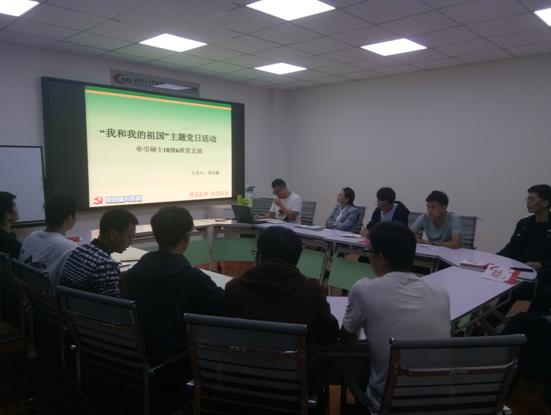 最后,支部于10月10日晚继续开展“我和我的祖国”主题党日活动。支部到会党员在支部书记戎有鑫的代领下共同观看了中华人民共和国成立的原始视频资料,并接着回顾了解放前和解放后中国共产党的光辉历程。另外,还从中国共产党自成立以来所完成的三件大事和所取得的五大成就这些方面回顾了伟大中国共产党的光辉历程。对党光辉历程的回顾,不仅让支部的每一位党员再次感受了先一辈共产党员开天辟地、奋斗不息为中华人民谋发展的热血沸腾,也增强了支部党员同志在以后的工作中积极投身祖国建设的渴望。最后,支部党员从服务祖国的角度出发,交流、研讨了大家对未来职业的规划。支部李莹老师、支部党员朱守东以及支部预备党员张笃超等分别发表了自己的切身感受。