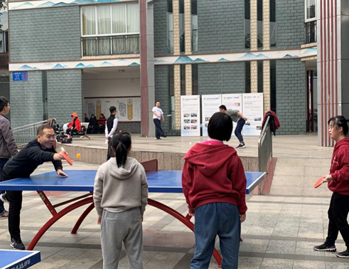 互助协会的老师们热烈欢迎志愿者同学的到来,分别介绍了每位唐宝的姓名、性格以及爱好。征求了四位唐宝的活动意愿,老师和志愿者们决定带唐宝们去附近的九里堤社区活动中心打羽毛球和乒乓球。