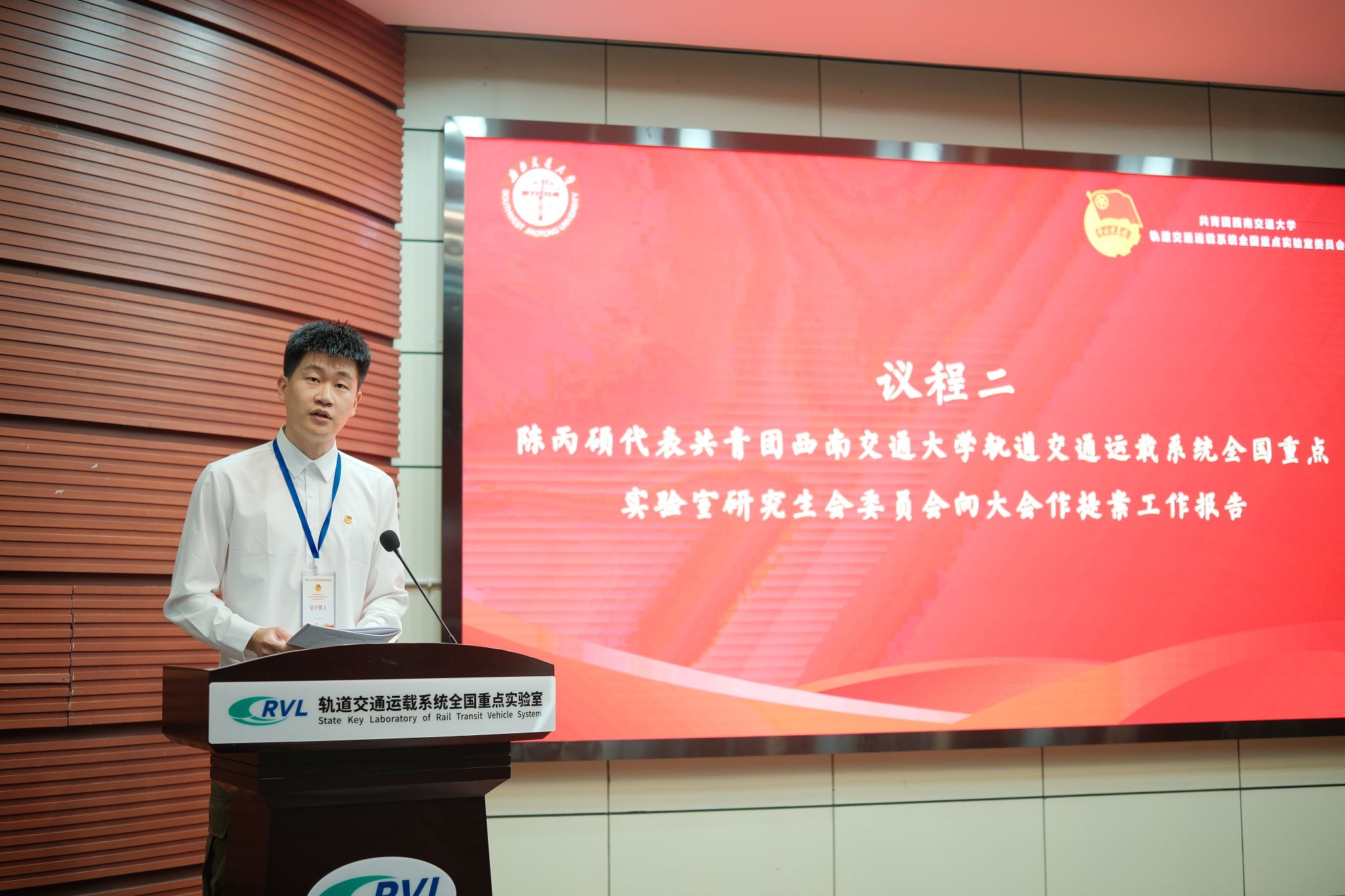 随后,轨道运载研究生会主席团成员刘浩宇代表研究生会委员会向大会作轨道运载研究生会2024-2025学年工作报告。报告以“踔厉奋发担使命,青春建功新时代”为主题,全面总结了过去一年研究生会在思想引领、学术科研、身心健康、志愿服务等方面取得的成绩,并对未来工作进行了展望。报告指出,研究生会将继续深化改革,创新管理模式,提升服务能力和水平,引导广大同学在交通强国建设中奋发有为,为实现中华民族伟大复兴添砖加瓦。