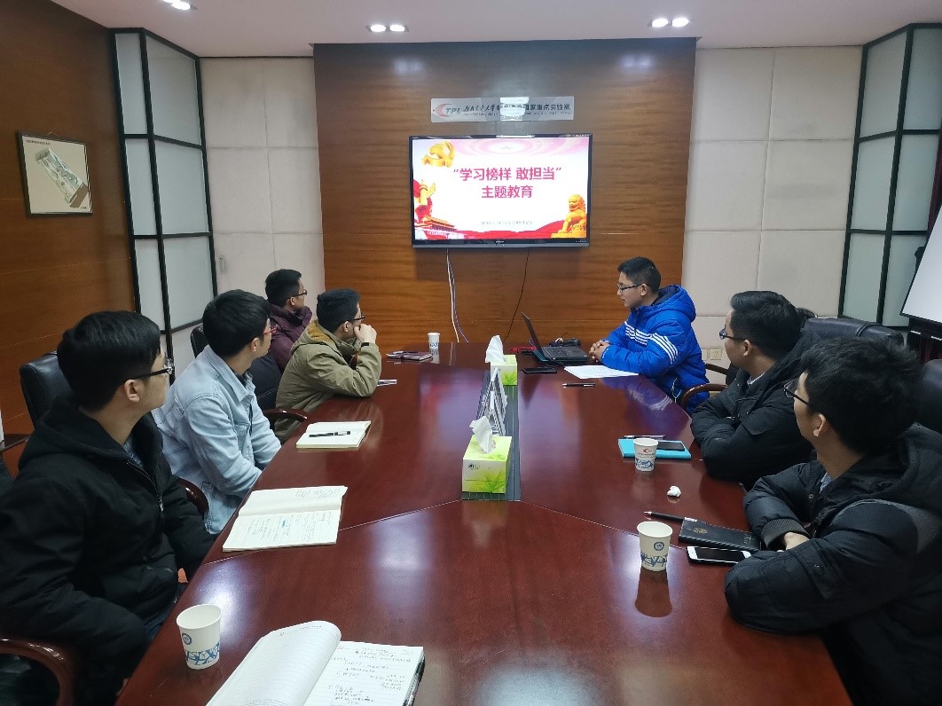 2019年11月28日晚上8点,为响应上级党组织号召,深入学习贯彻习近平新时代中国特色社会主义思想,不断深入推进“不忘初心、牢记使命”主题教育,牵引硕士2018级4班党支部在牵引红楼214召开了组织生活会,本次会议主题为“学习榜样敢担当”,会议由党支部书记何绍友主持。