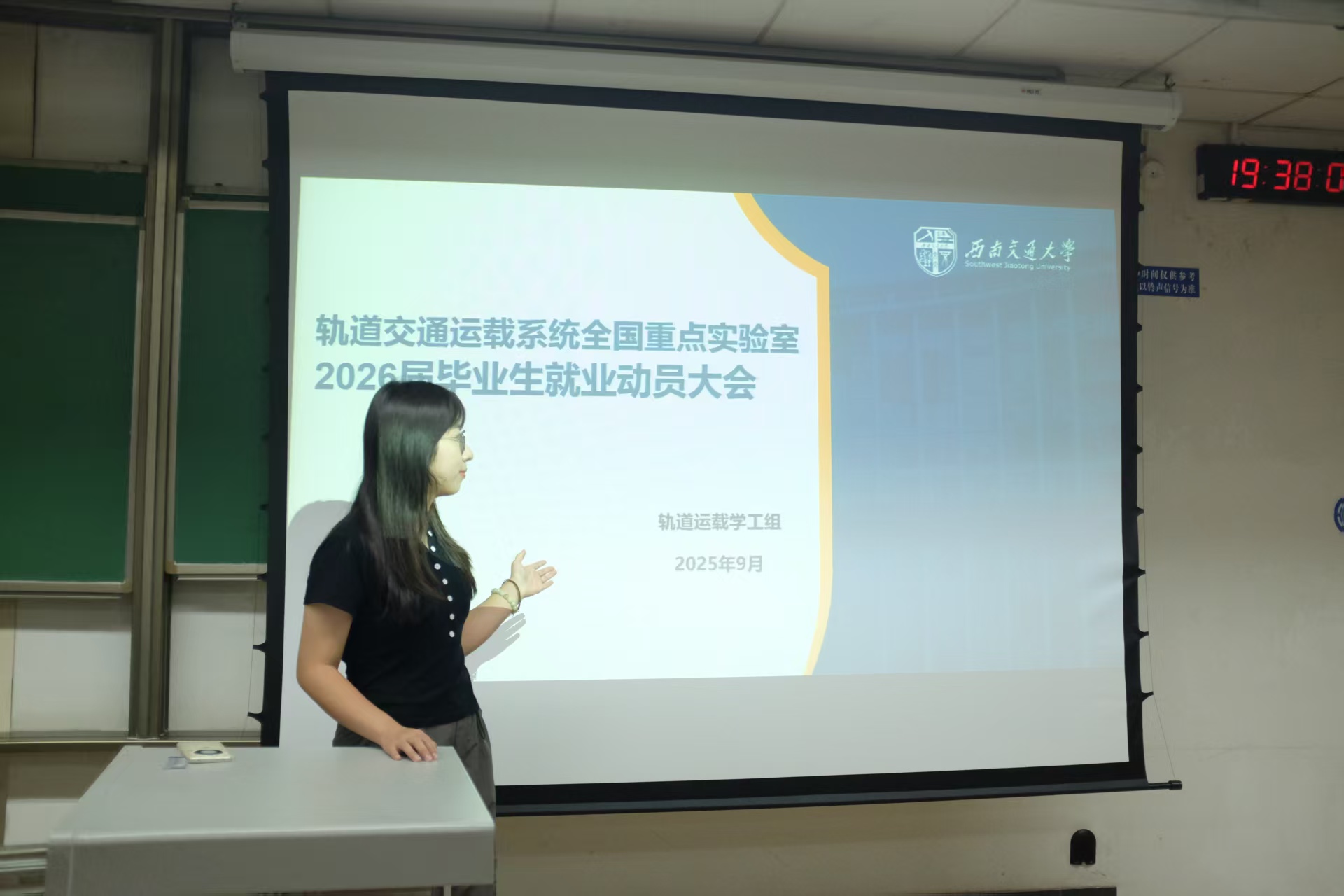 往年就业统计数据与就业情况反馈,并结合轨道交通行业发展趋势及就业资源,深入分析当前就业整体态势,随后系统解读就业签约全流程,重点明确就业推荐表打印、毕业生签约落实去向登记、档案与户口信息登记及毕业去向校核等关键环节。她强调,全体毕业生须认真学习就业系统操作规范,确保各项手续高效合规办理。
