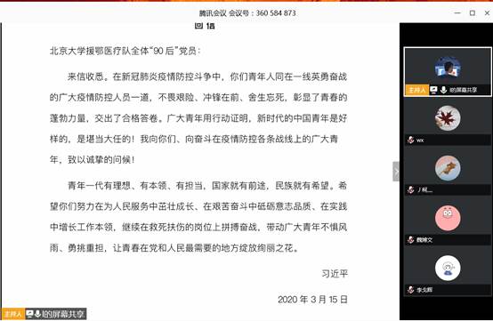 图为党支部学习习近平总书记给北京大学援鄂医疗队全体90后党员回信