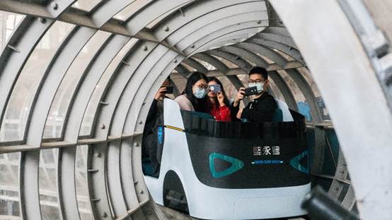 乘坐高温超导磁悬浮环形试验线模型车