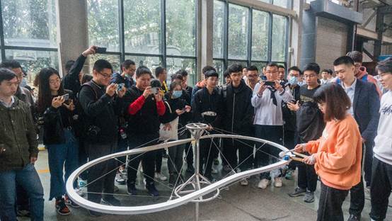 其中,大家对高温超导磁悬浮环形试验线表示了极大的兴趣,一边认真聆听,一边积极地与讲解员交流问题。最后同学们依次乘坐了高温超导磁悬浮环形试验线模型车,亲身感受高温超导磁悬浮的非凡魅力。