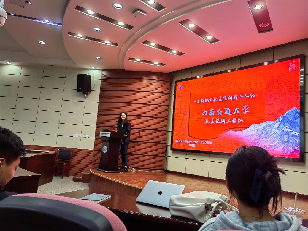 (当时称北方交通大学唐山工学院)派出的全国高校中唯一一支抗美援朝工程队的历史故事,期间我校抗美援朝工程队攻克重重难关,修建五座机场,凸显交大人爱国敬业、无私奉献的精神品质。最后,刘馨蔓结合习近平总书记提出的抗美援朝精神,针对新时代的交大人应该怎么做这一问题进行阐释,鼓励交大人学以致用,继续争做新时代最可爱的人。宣讲结束后,现场同学积极互动交流,踊跃表达时代新人声音。