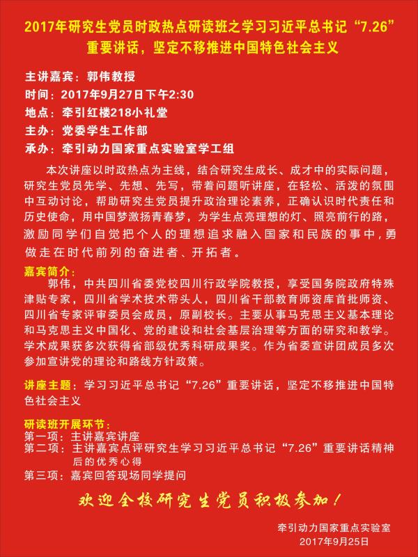 2017年研究生党员时政热点研读班之学习习近平总书记“7.26”重要讲话,坚定不移推进中国特色社会主义