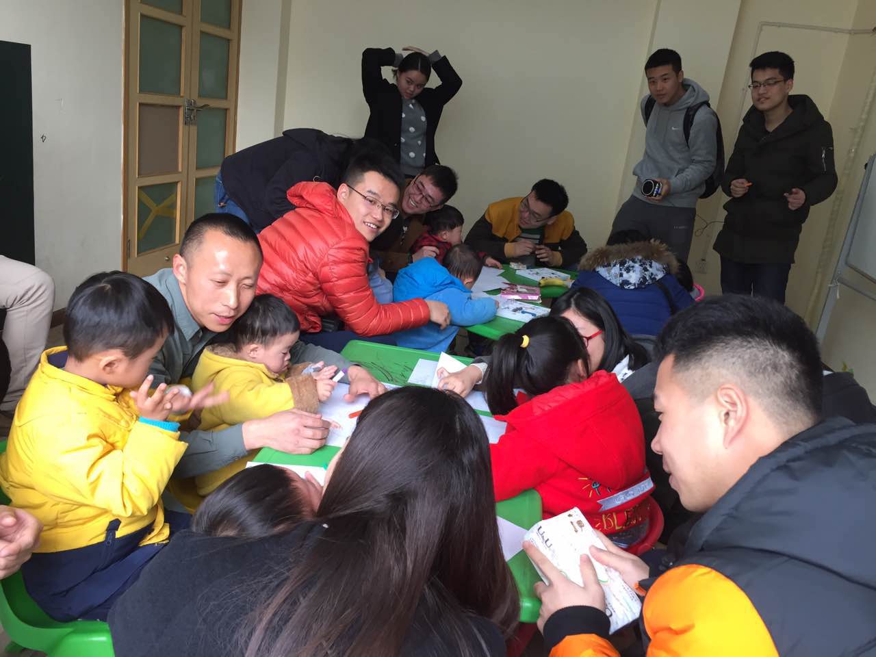 志愿者们已经到达唐氏综合征互助协会,听协会负责人讲解此次志愿活动的注意事项,了解“唐宝”们的脾气特点,方便更好地与宝宝们交流,同时协助协会工作人员进行活动场地的布置。待场地布置完后,“唐宝”们在家长的协助下也都坐到了自己的位置上,主持人便宣布交流会正式开始。