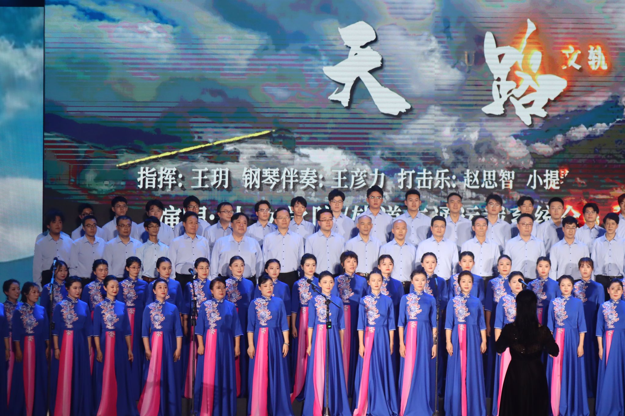 的21名教师、18名学生与人文学院师生携手组成合唱队伍,合唱著名歌曲《天路》。歌曲《天路》歌颂了青藏铁路这一伟大工程,也充分契合着“文轨车书郅大同”的交大信念。a片漫画