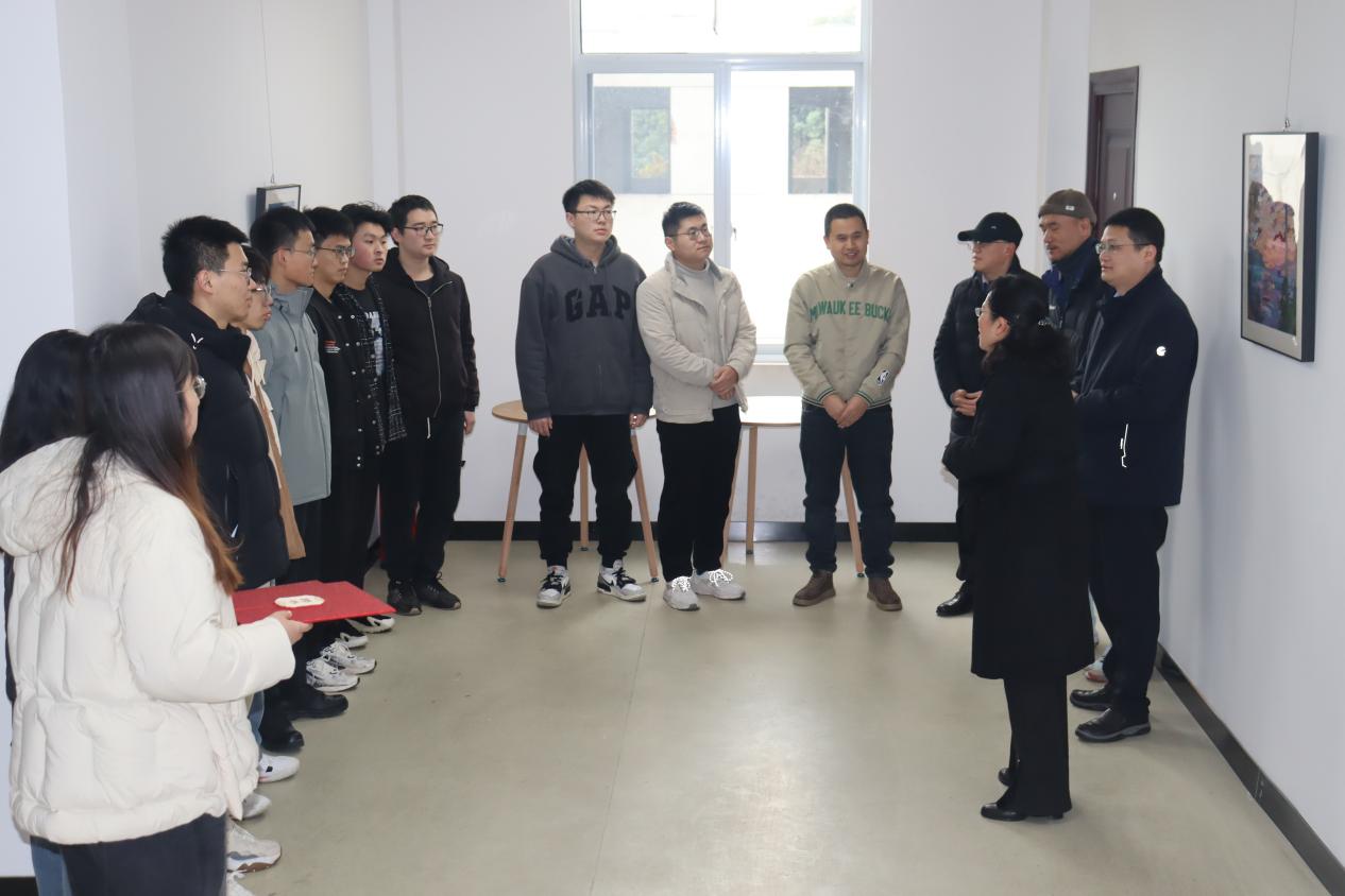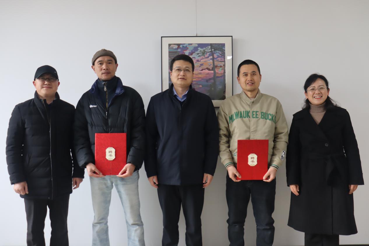 特聘请建筑学院熊路、罗乐两位老师为美育导师,庞烈鑫书记现场向两位美育导师颁发聘书并合影。
