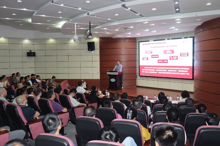 本次学习聚焦“大力弘扬教育家精神,争做新时代‘大先生’”主题,孔书记紧扣教育家精神的核心要义,从理想信念、道德情操、育人智慧、躬耕态度、仁爱之心、弘道追求等方面进行了阐述,并列举了黄大年、张桂梅等典型人物的先进事迹。随后,孔书记结合相关文件,强调了师德师风建设的重要意义,他重点解读了《新时代高校教师职业行为十项准则》与师德违规行为负面清单,通过剖析师德失范、学术不端等方面的典型案例,深刻揭示了违规行为的严重后果与不良影响,警示全体教职工务必严守师德“标线”,远离师德“红线”。
