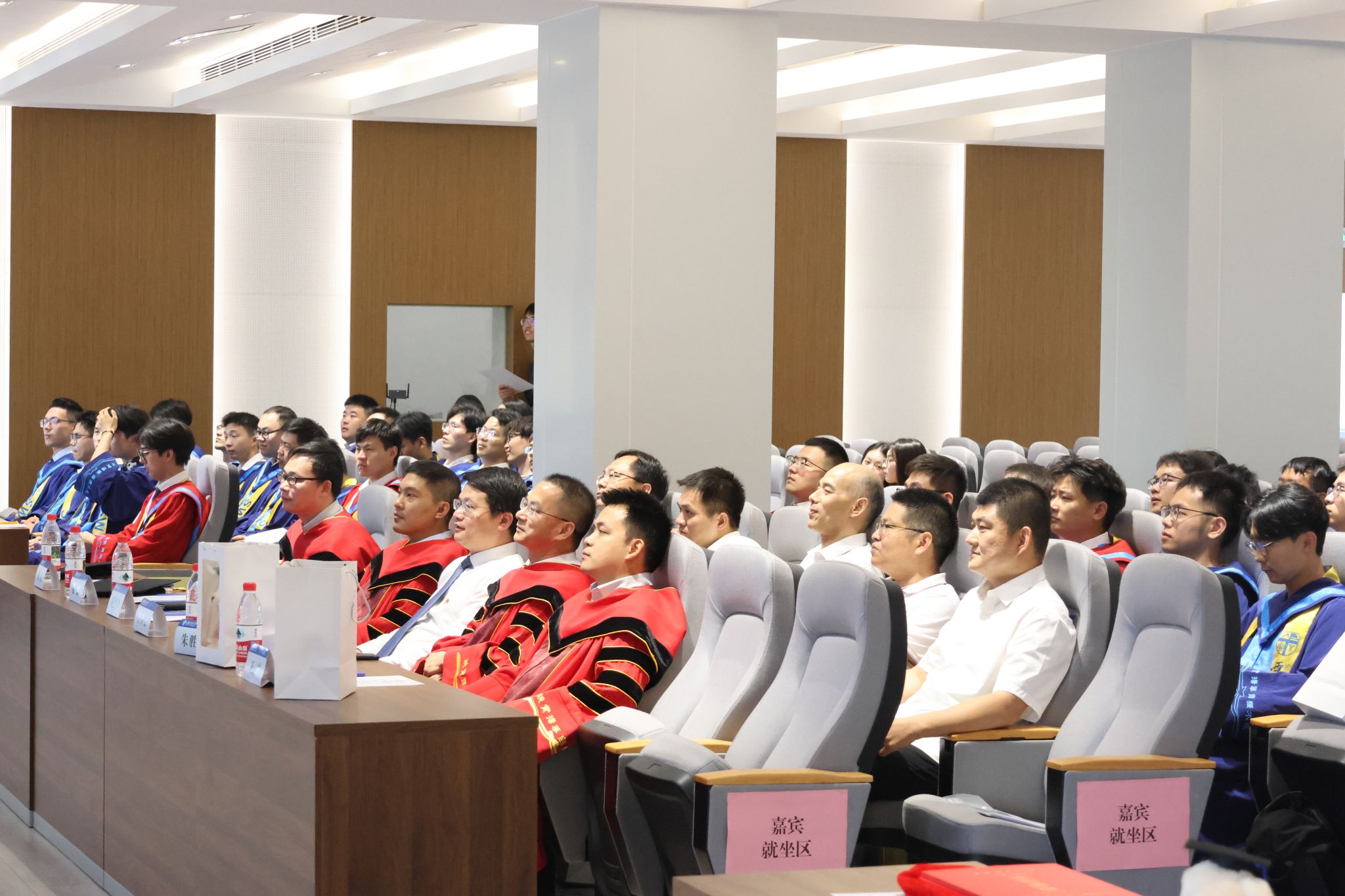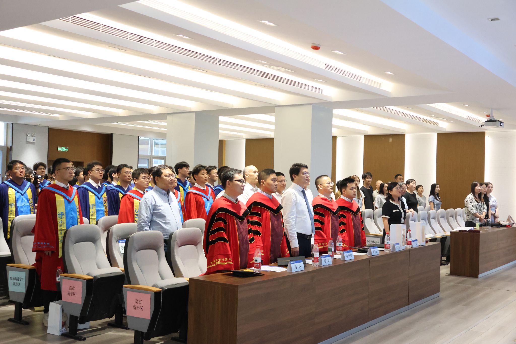 在学位授予环节,王开云主任率导师代表团队为现场的80余名硕博毕业生进行拨穗,将毕业生流苏从帽檐右侧轻拨至左侧并合影。台下亲友纷纷举起手机,记录下这一难忘时刻。