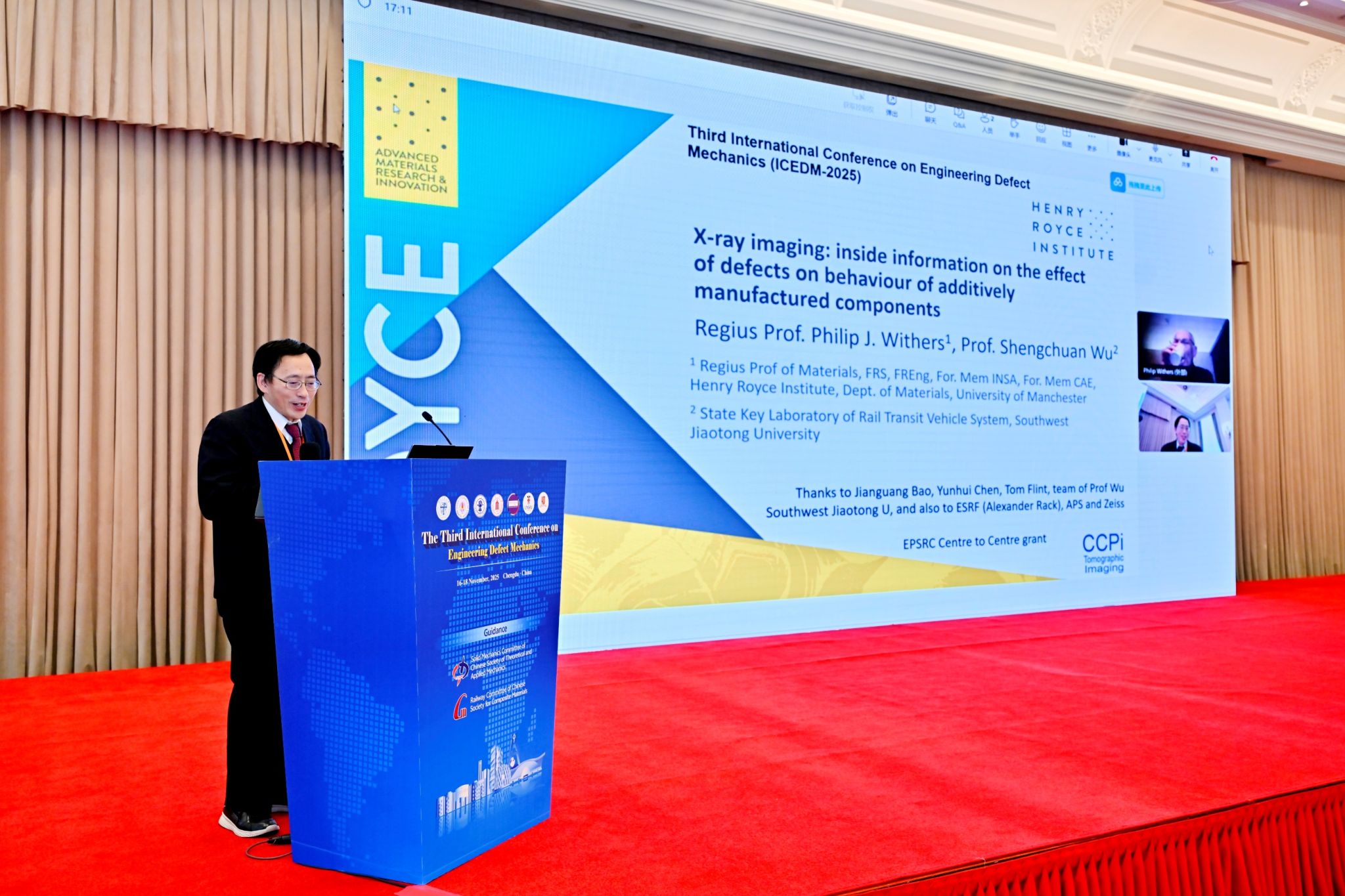 会议期间,国内外领域顶尖专家学者联袂呈现了高水平主旨报告。英国皇家工程院和科学院院士、中国工程院外籍院士Philip J. Withers围绕《X-Ray Imaging: Inside Information on the Effect of Defects on Behaviour in Additively Manufactured Components》作专题汇报,详解了高分辨X射线在先进材料及结构内部缺陷成像与抗疲劳评估中的关键作用及进展;世界科学院院士、印度国家工程与科学院院士、南洋理工大学首席教授Ramamurty UPADRASTA发表了《Strength, Ductility, Fracture Toughness, and Fatigue Resistance of Additively Manufactured Alloys》主旨演讲,剖析了内部缺陷对增材合金强度、延展性、断裂韧性等核心性能的影响机制。英国曼彻斯特大学国家X射线CTa片漫画