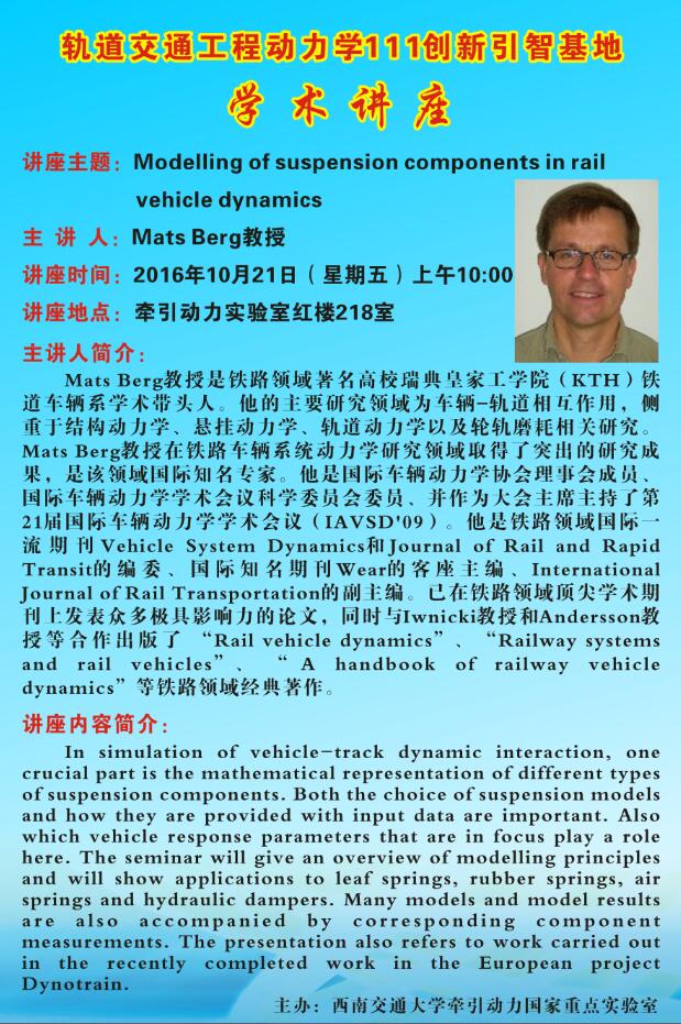 【学术讲座】Modelling of suspension components in rail vehicle dynamics