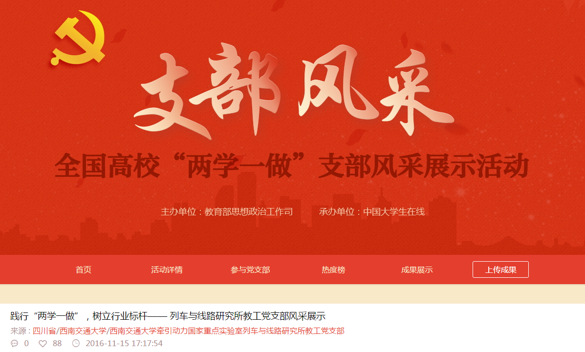 党支部积极发挥翟婉明院士教学科研党员示范岗的标杆作用,凝心聚力,引导党支部党员和列车线路所全体成员围绕国家创新驱动发展战略和学科发展需求,紧紧瞄准国家轨道交通科学技术发展前沿,求真务实,以创新为本,积极投身中国轨道交通事业,在高速、重载铁路技术领域为国家轨道交通事业的发展做出重要贡献。