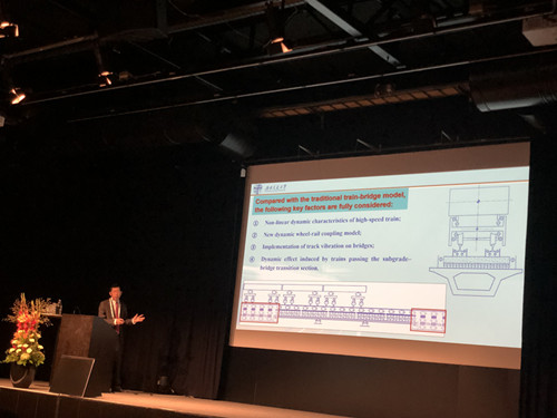 翟婉明院士应邀作其中一个大会特邀报告,题目为Train-track-bridge dynamic interaction: a state-of-art review。报告系统评述了列车-轨道-桥梁动力相互作用的研究历程与国内外最新研究进展,重点展示了中国特别是翟婉明院士团队在列车-轨道-桥梁动力相互作用模型及其试验验证与典型工程应用方面所取得的突出成果,最后提出了未来研究方向及面临的挑战。报告引起了与会代表的高度关注,进行了热烈讨论。据悉,该述评报告已以44页长文发表在代表车辆系统动力学领域最高学术水平的VEHICLE SYSTEM DYNAMICS国际学术期刊2019年第7期。