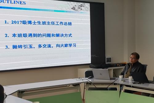 班主任工作开展情况进行了总结,并就下一步如何开展工作提出了指导性意见。她指出,研究生的教育管理多以团队管理为主,而班级建设薄弱,因此需要一位既有学术背景又有工作热情和管理经验的研究生导师担任研究生班级的班主任,这样不仅有利于学生成长,还有利于班级建设,形成多员育人的模式。希望班主任一方面能进一步深入学生,有针对性开展谈心谈话、走访宿舍、关注特殊学生,夯实各项工作任务;另一方面能积极参与学生评奖评优、推优入党等工作,在关键环节发挥好育人作用。