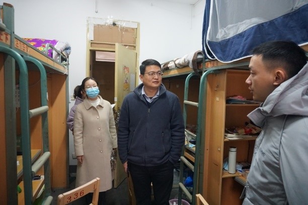 检查走访学生宿舍并与学生亲切交流