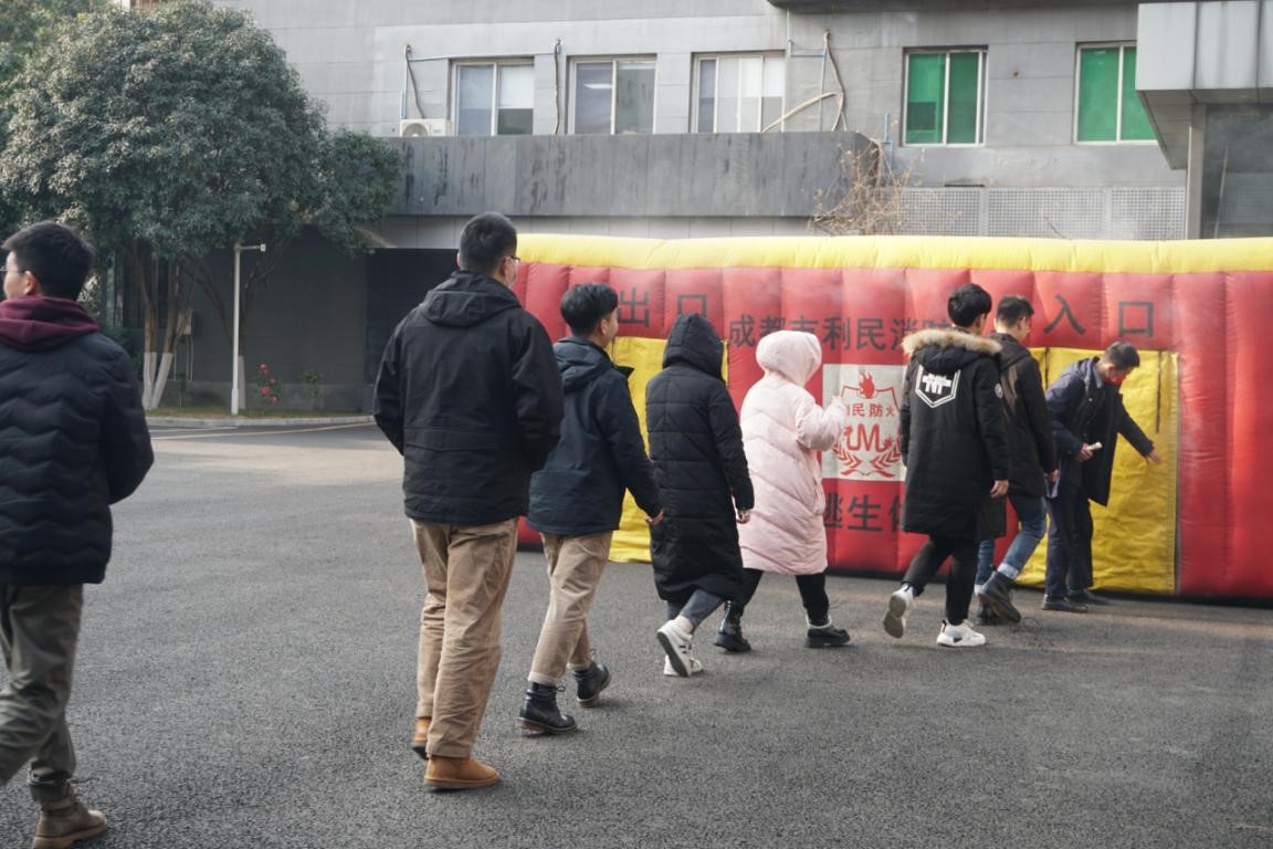 办公楼下空地开展消防逃生疏散演练。现场模拟真实的火灾浓烟场景,参加演练的师生在工作人员的引导下,掩住口鼻,采取低姿势、安全有序、迅速地进入和撤离逃生体验舱,让大家亲身体会到火灾的危险性和浓烟的危害性。