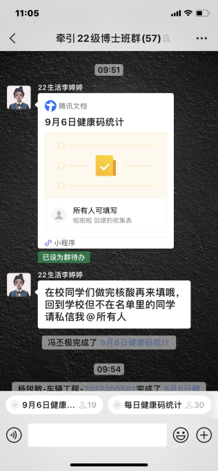在全体研究生班级中设置由“班级网格员”,由生活委员和班长配合担任“班级网格员”,开展防控工作。“班级网格员”们利用腾讯在线文档小程序等工具,每日在指定时间内对a片漫画