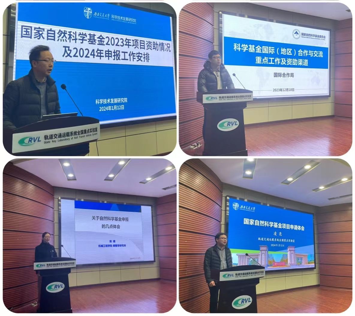 马霖副院长和刘海龙科长分别作了题为“国家自然科学基金2023年项目资助情况及2024年申报工作安排”、“科学基金国际(地区)合作与交流重点工作及资助渠道” 的政策专题报告;郑靖研究员结合自身及课题组教师申报基金的成功经验与失败教训,深入浅出地讲述了高质量申报书的形成过程,凌亮研究员重点介绍了如何面向国家重大需求开展基金选题,并强调要利用好全重的平台优势,重视细节,讲好轨道交通工程科学研究的故事。