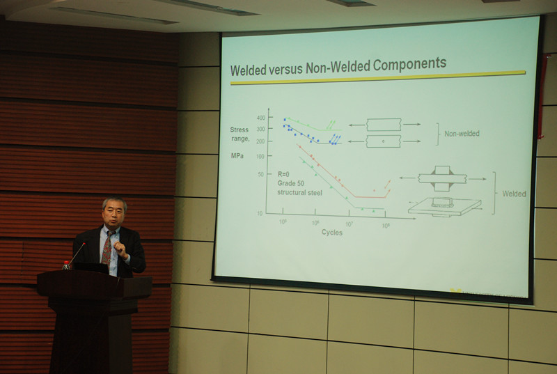Prof. Dong, based on his observations on and experiences with some of major rail vehicle manufacturers over recent years, shall provide his perspectives on how the Chinese high speed rail vehicle manufacturers could take advantage of these methodologies to become technologically advanced equipment suppliers. Then, Prof. Zhao gave a lecture on the topic of Study on fatigue life probability prediction method of welded structure based on theory of random vibration.