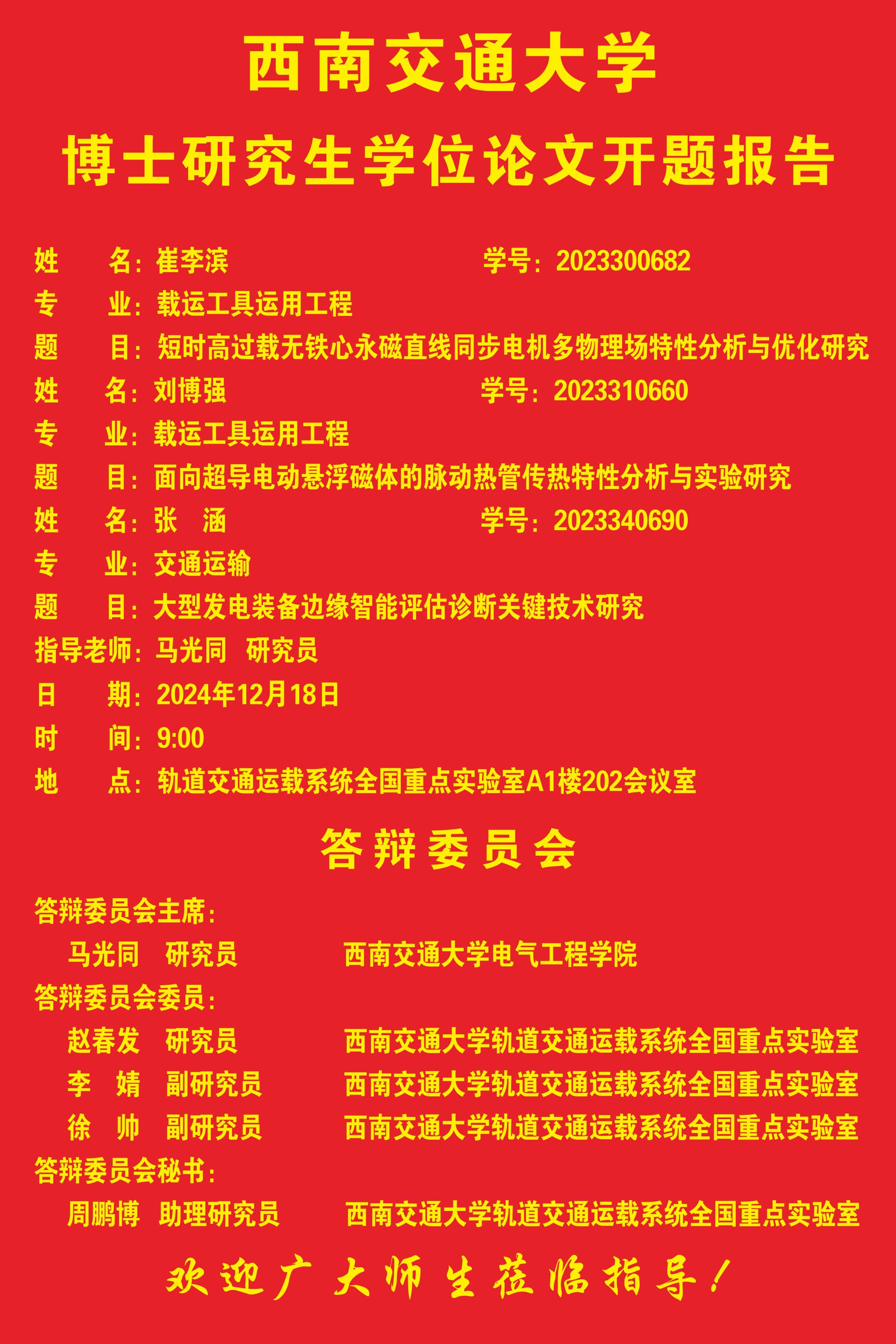 a片漫画 崔李滨博士、刘博强博士、张涵博士学位论文开题报告