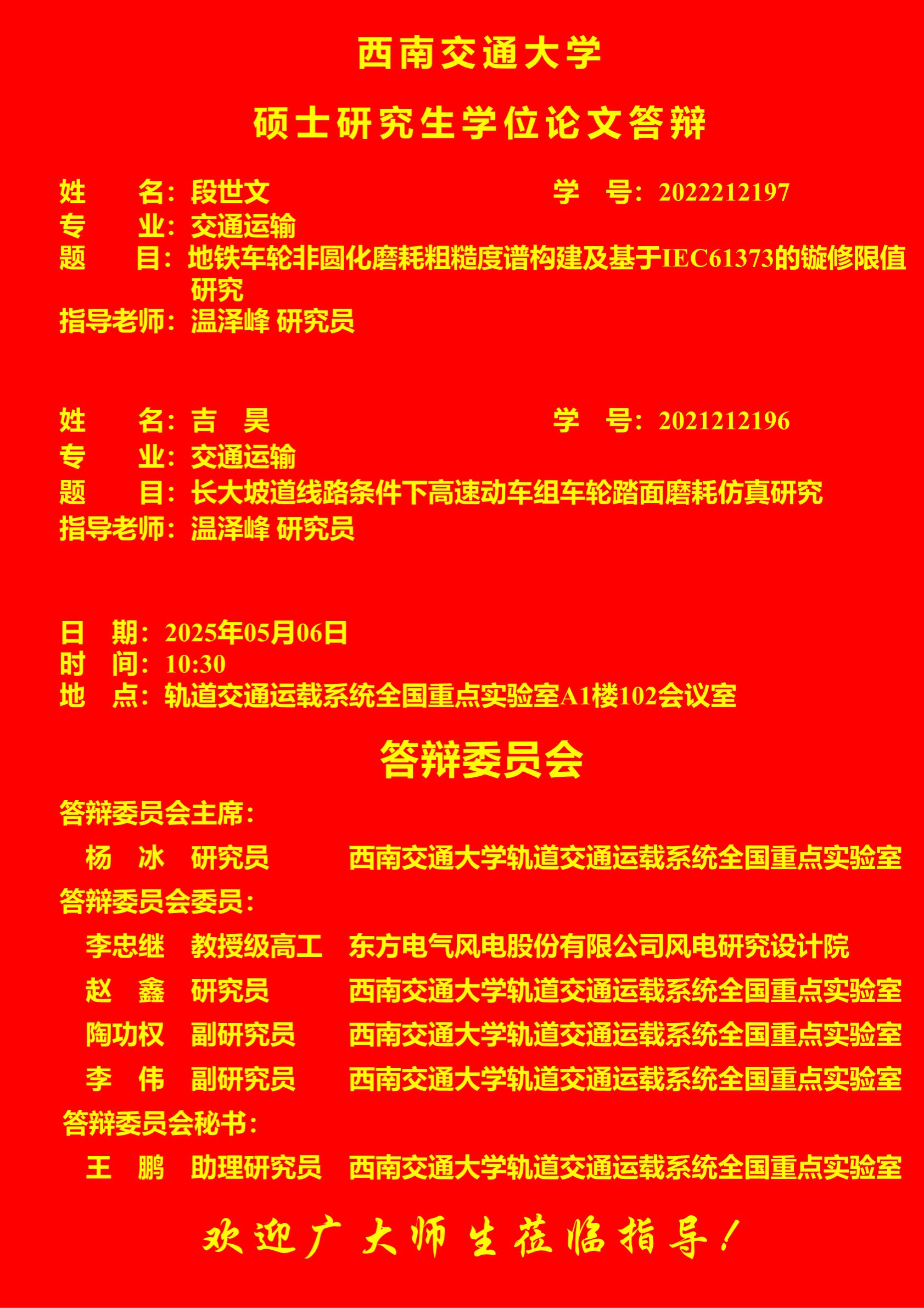 西交通大学段世文、吉昊硕士研究生学位论文答辩