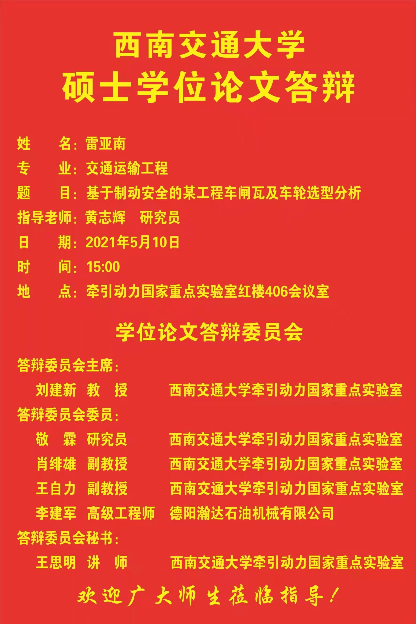来源: 发布者:牵引动力研究生教育办公室 日期:2021/05/08 17:16:40 点击数: